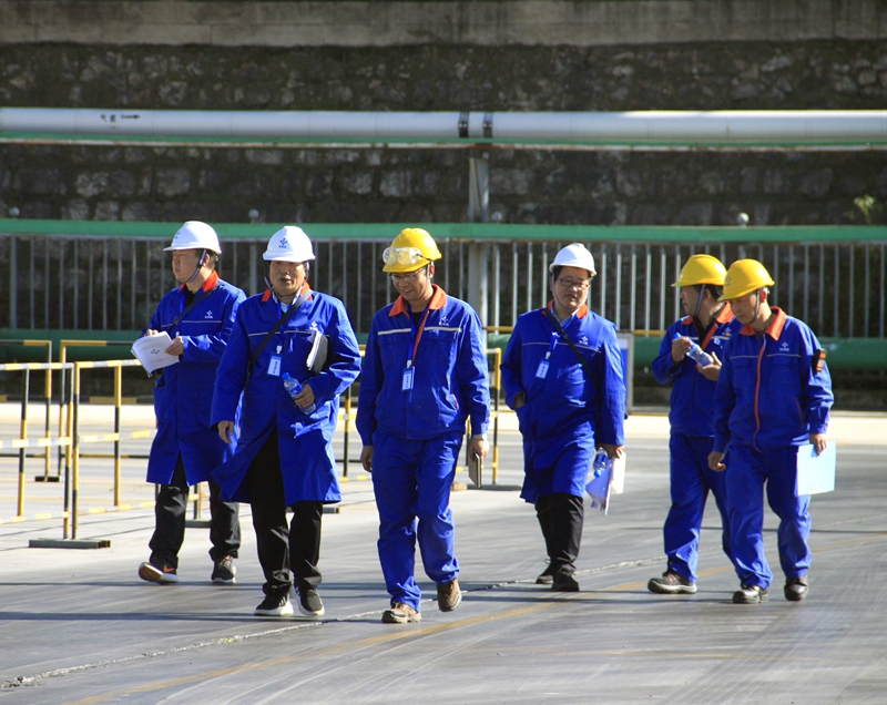 11月21日至22日,國務院安委辦第五檢查組組長、礦山救援中心一級巡視員薛淵博,率國務院安委辦第三輪專項排查治理第五檢查組成員蒞臨公司所屬云峰化工及大為制氨,對公硝酸銨、液氨等?;返陌踩a(chǎn)、儲存情況進行綜合檢查。云南省、曲靖市、宣威市(沾益區(qū))三級應急管理部門領導,曲靖市、宣威市(沾益區(qū))兩級政府負責人及云天化集團副總經(jīng)理明大增、云天化股份副總經(jīng)理郭成崗等相關領導陪同檢查。