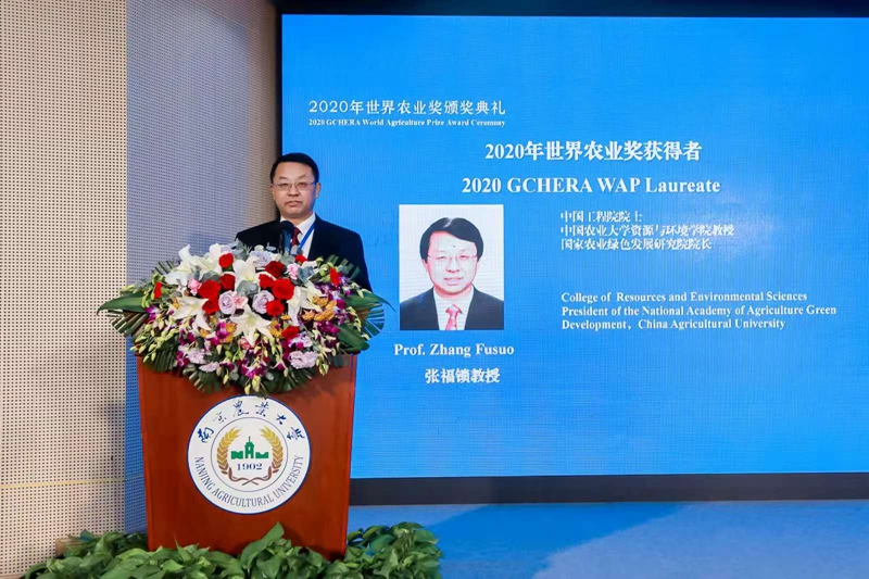 12月1日上午,2020年GCHERA世界農(nóng)業(yè)獎(jiǎng)?lì)C獎(jiǎng)典禮暨2020世界農(nóng)業(yè)對(duì)話在南京農(nóng)業(yè)大學(xué)舉行,會(huì)上揭曉了2020年GCHERA世界農(nóng)業(yè)獎(jiǎng)。中國(guó)工程院院士、云天化植物營(yíng)養(yǎng)首席科學(xué)家、中國(guó)農(nóng)業(yè)大學(xué)張福鎖教授憑借在植物營(yíng)養(yǎng)學(xué)研究與教育、中國(guó)節(jié)肥增效及綠色發(fā)展、世界農(nóng)業(yè)可持續(xù)發(fā)展的卓越貢獻(xiàn),獲得2020年GCHERA世界農(nóng)業(yè)獎(jiǎng),是我國(guó)首位獲此殊榮的科學(xué)家。